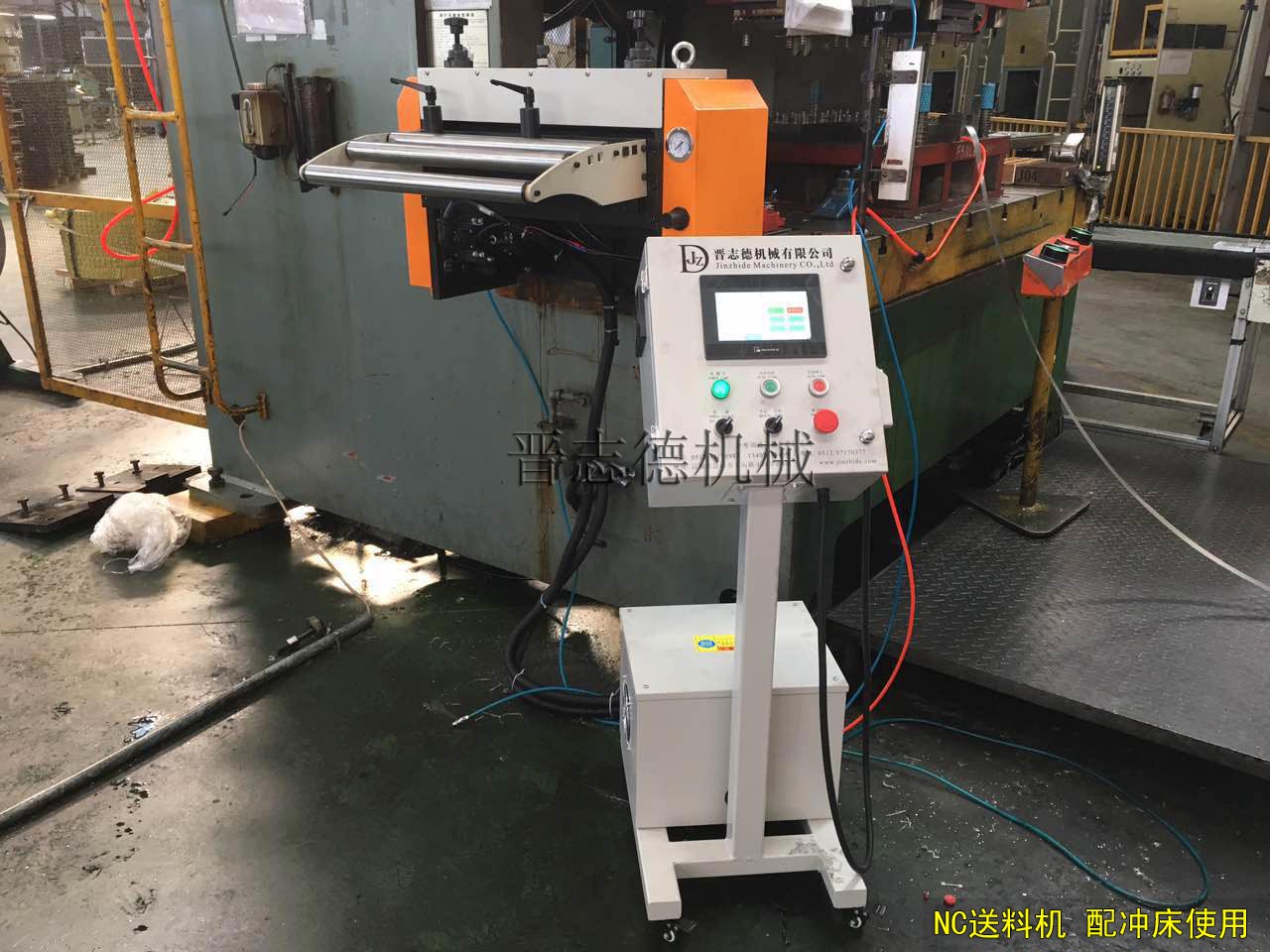 2、NC伺服送料机不仅适合搭配各种冲床使用,也可以搭配油压机、剪板机、激光切割机等各类型加工设备使用,送料宽度、送料步距没有限制,定制化程度高,使用范围比滚轮送料机要广。